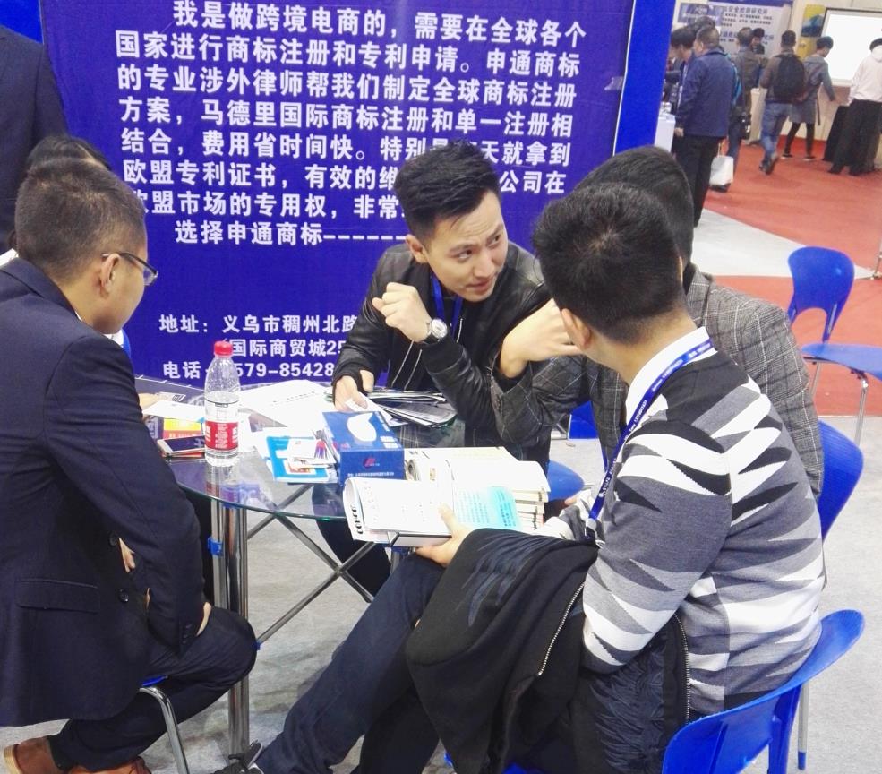 2017年4月11-13日,义乌国际电商博览会现场,12年专注义乌商标注册的 ‘’义乌市申通商标代理有限公司‘’展位上 人头攒动,咨询的客户络绎不绝。